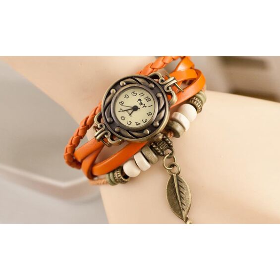 Ρολόι χειρός με Retro Καντράν, λουράκι από δερματίνη και μεταλλικό Φύλλο.