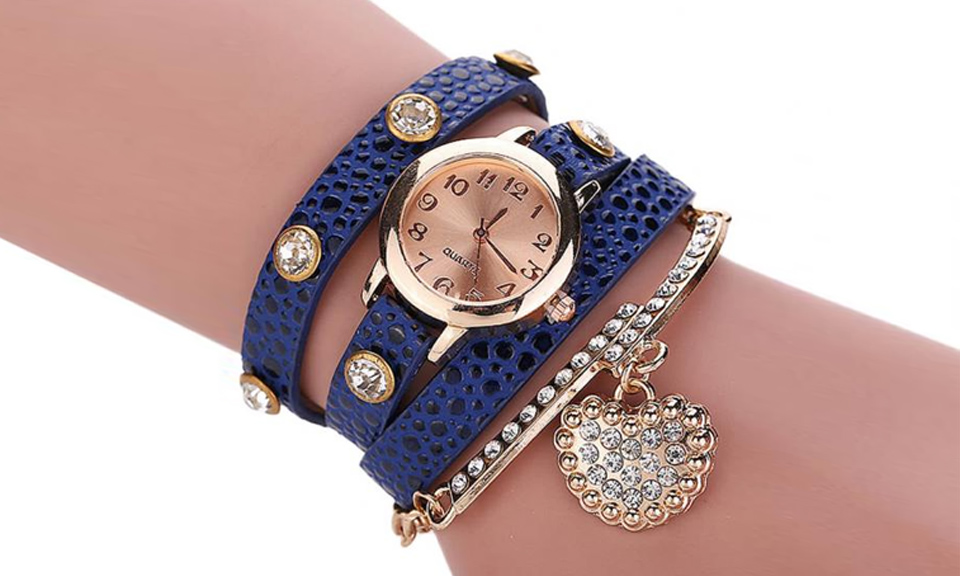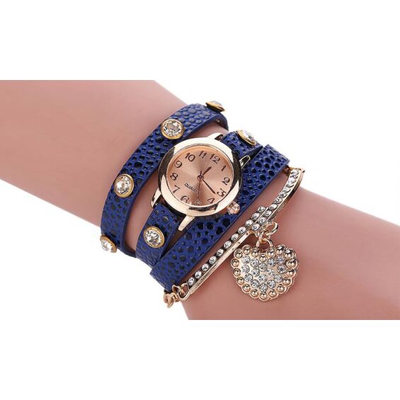Ρολόι Βραχιόλι με Φολιδωτό Σχέδιο και Καρδιά Μενταγιόν (10143)