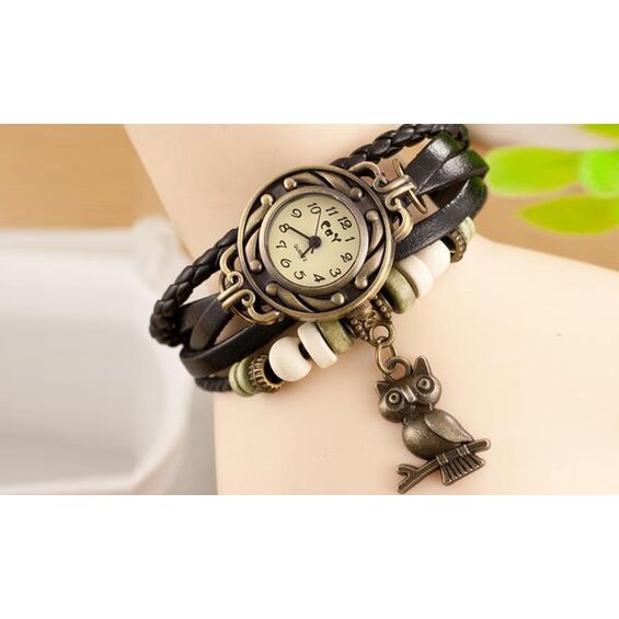 Ρολόι-Βραχιόλι Ρετρό με Μπρελόκ Κουκουβάγια (10076)