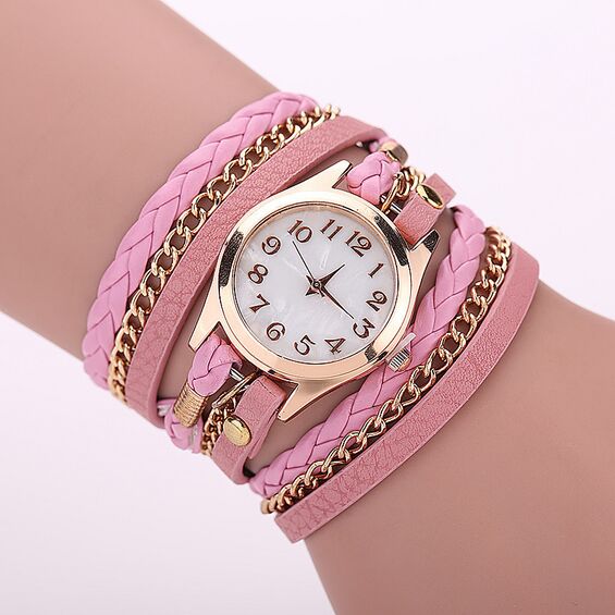Ρολόι χειρός με Retro χρυσό Καντράν και μεγάλο λουράκι από δερματίνη και μεταλλική αλυσίδα.