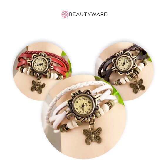 Ρολόι χειρός με Retro Καντράν,  λουράκι από δερματίνη και μεταλλική πεταλούδα.