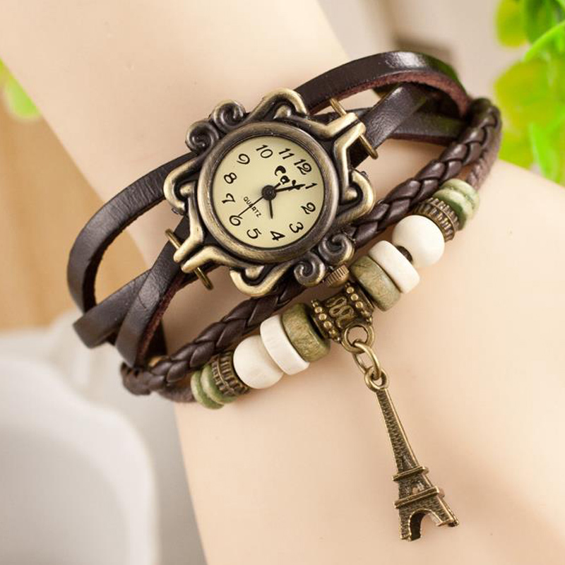 Ρολόι χειρός με Retro Καντράν,  λουράκι από δερματίνη και μεταλλικό πύργο του Άιφελ