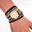 Ρολόι χειρός με μεγάλο λουράκι από δερματίνη και μεταλλική αλυσίδα.