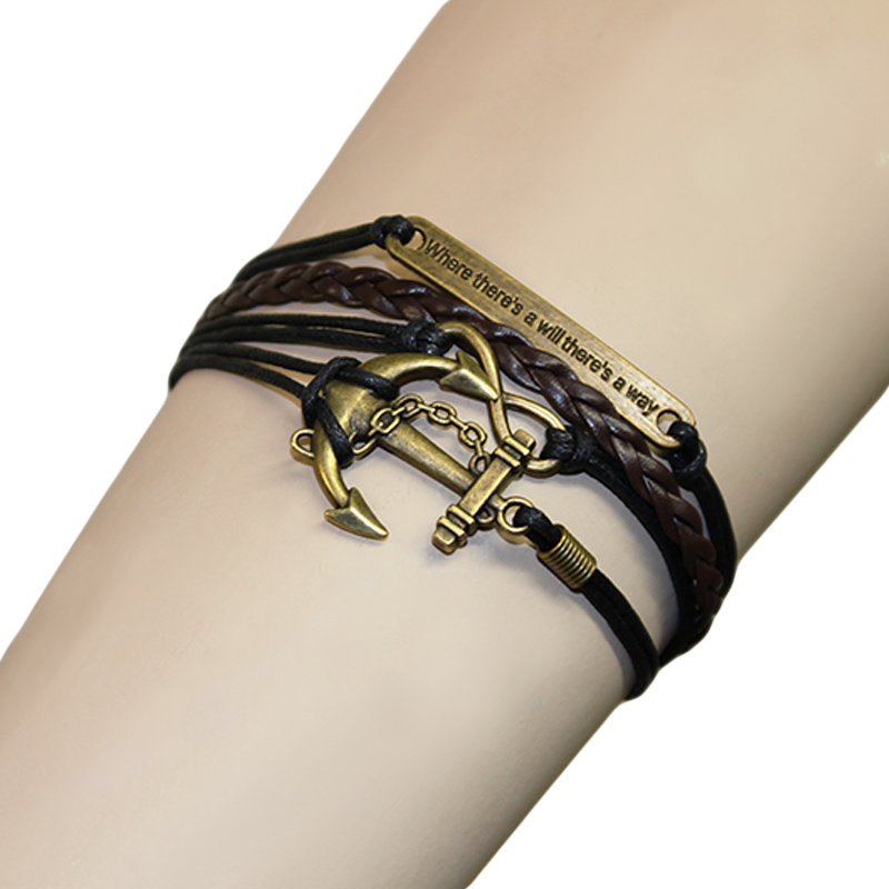 Βραχιόλι από Δερματίνη και Κλωστές με Μεταλλικά Διακοσμητικά Στοιχεία (10122)