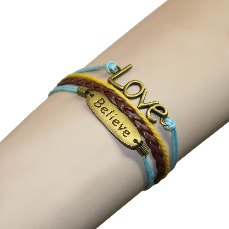 Βραχιόλι από δερματίνη και κλωστές με μεταλλικά διακοσμητικά στοιχεία.