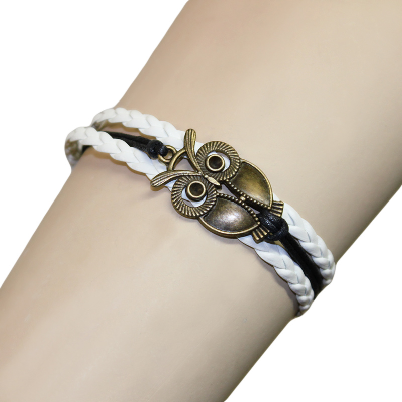 Βραχιόλι από δερματίνη και κλωστές με μεταλλικά διακοσμητικά στοιχεία.