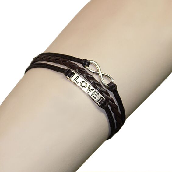 Βραχιόλι από δερματίνη και κλωστές με μεταλλικά διακοσμητικά στοιχεία.