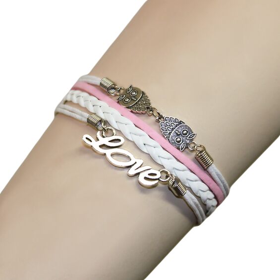 Βραχιόλι από δερματίνη και κλωστές με μεταλλικά διακοσμητικά στοιχεία.
