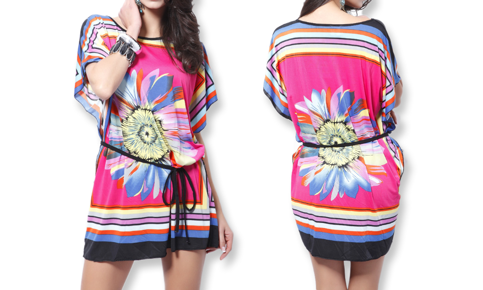 Φόρεμα παραλίας με Λουλούδια και Ζώνη