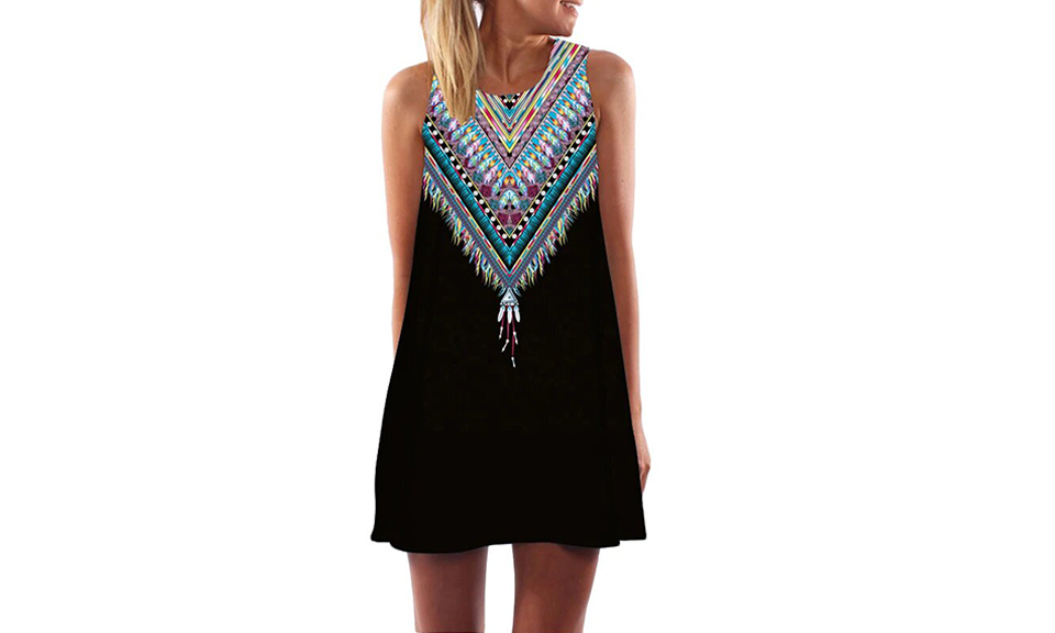 Αμάνικο Φλος Φόρεμα με Ινδικό Τύπωμα
