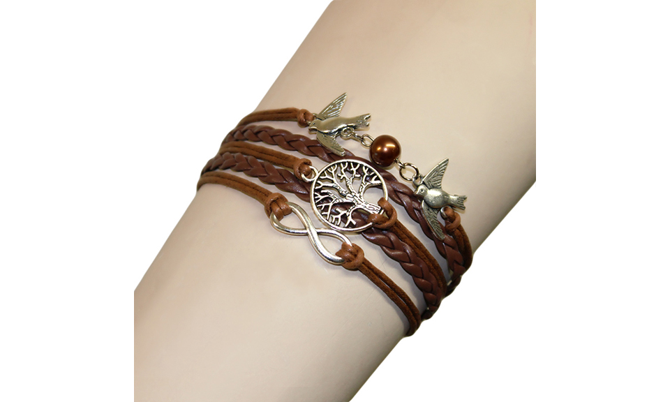 Βραχιόλι από δερματίνη και κλωστές με μεταλλικά διακοσμητικά στοιχεία.