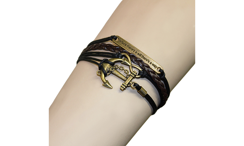 Βραχιόλι από Δερματίνη και Κλωστές με Μεταλλικά Διακοσμητικά Στοιχεία