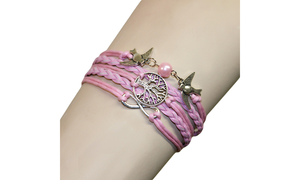 Βραχιόλι από δερματίνη και κλωστές με μεταλλικά διακοσμητικά στοιχεία.