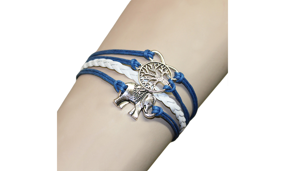 Βραχιόλι από δερματίνη και κλωστές με μεταλλικά διακοσμητικά στοιχεία. Διαθέτει αλυσίδα στο κούμπωμα για να προσαρμόζει σε όλα τα μεγέθη καρπών. Χαρακτηριστικά: Διαστάσεις: 17cm + 4cm αλυσίδα Υλικό: Οικολογικό δέρμα, Κλωστή και Μεταλλικά διακοσμητικά στοιχεία