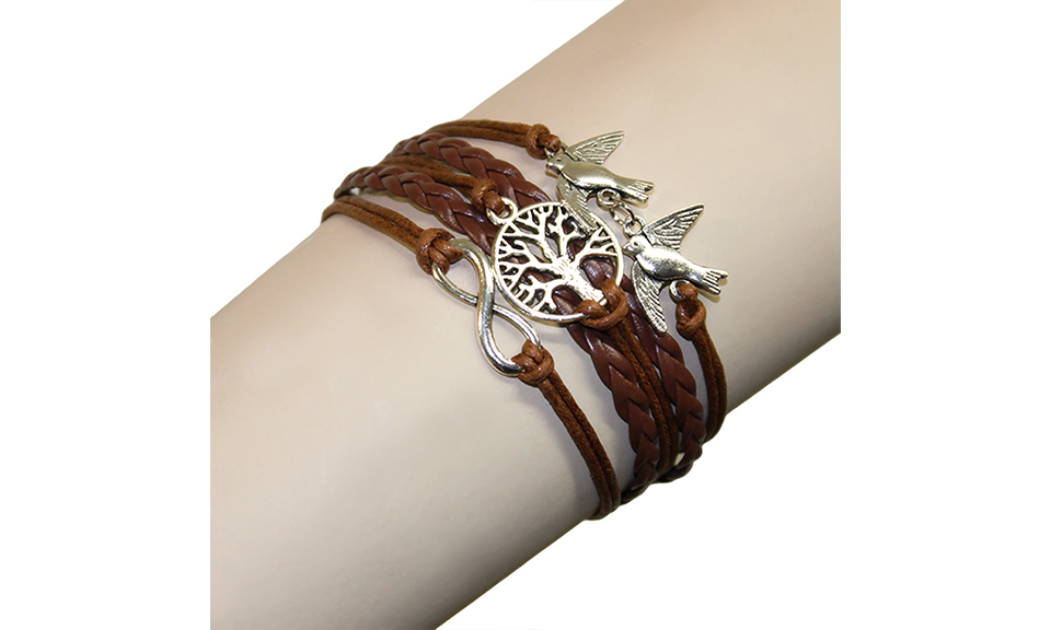 Βραχιόλι από δερματίνη και κλωστές με μεταλλικά διακοσμητικά στοιχεία. Διαθέτει αλυσίδα στο κούμπωμα για να προσαρμόζει σε όλα τα μεγέθη καρπών. Χαρακτηριστικά: Διαστάσεις: 17cm + 4cm αλυσίδα Υλικό: Οικολογικό δέρμα, Κλωστή και Μεταλλικά διακοσμητικά στοιχεία