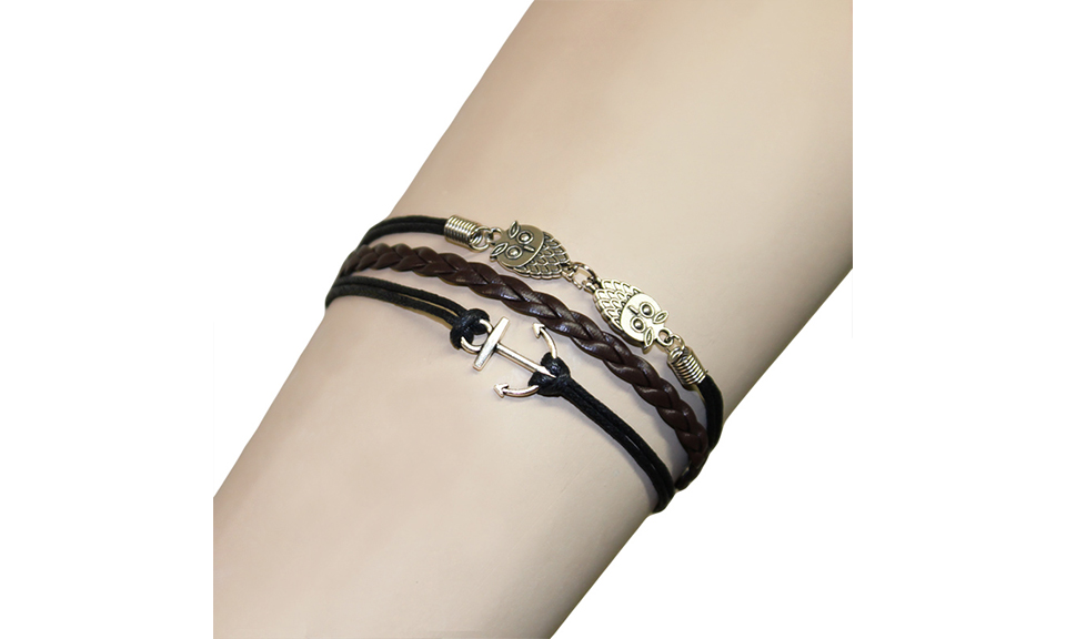 Βραχιόλι από δερματίνη και κλωστές με μεταλλικά διακοσμητικά στοιχεία. Διαθέτει αλυσίδα στο κούμπωμα για να προσαρμόζει σε όλα τα μεγέθη καρπών. Χαρακτηριστικά: Διαστάσεις: 17cm + 4cm αλυσίδα Υλικό: Οικολογικό δέρμα, Κλωστή και Μεταλλικά διακοσμητικά στοιχεία