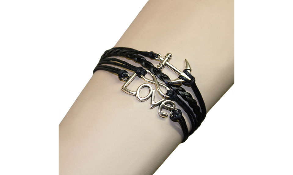 Βραχιόλι από δερματίνη και κλωστές με μεταλλικά διακοσμητικά στοιχεία. Διαθέτει αλυσίδα στο κούμπωμα για να προσαρμόζει σε όλα τα μεγέθη καρπών. Χαρακτηριστικά: Διαστάσεις: 17cm + 4cm αλυσίδα Υλικό: Οικολογικό δέρμα, Κλωστή και Μεταλλικά διακοσμητικά στοιχεία