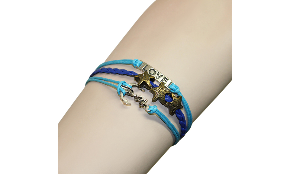 Βραχιόλι από δερματίνη και κλωστές με μεταλλικά διακοσμητικά στοιχεία. Διαθέτει αλυσίδα στο κούμπωμα για να προσαρμόζει σε όλα τα μεγέθη καρπών. Χαρακτηριστικά: Διαστάσεις: 17cm + 4cm αλυσίδα Υλικό: Οικολογικό δέρμα, Κλωστή και Μεταλλικά διακοσμητικά στοιχεία