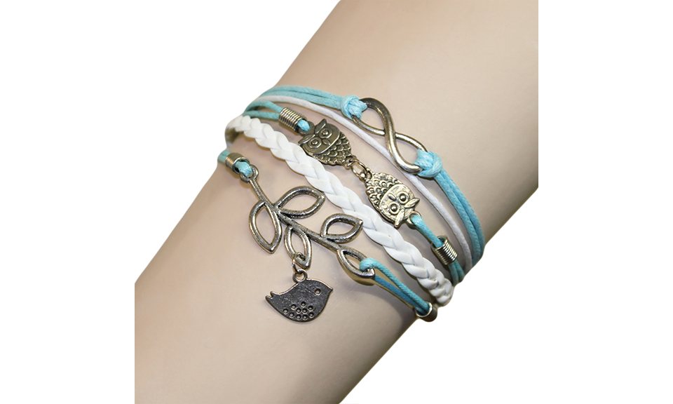Βραχιόλι από δερματίνη και κλωστές με μεταλλικά διακοσμητικά στοιχεία. Διαθέτει αλυσίδα στο κούμπωμα για να προσαρμόζει σε όλα τα μεγέθη καρπών. Χαρακτηριστικά: Διαστάσεις: 17cm + 4cm αλυσίδα Υλικό: Οικολογικό δέρμα, Κλωστή και Μεταλλικά διακοσμητικά στοιχεία