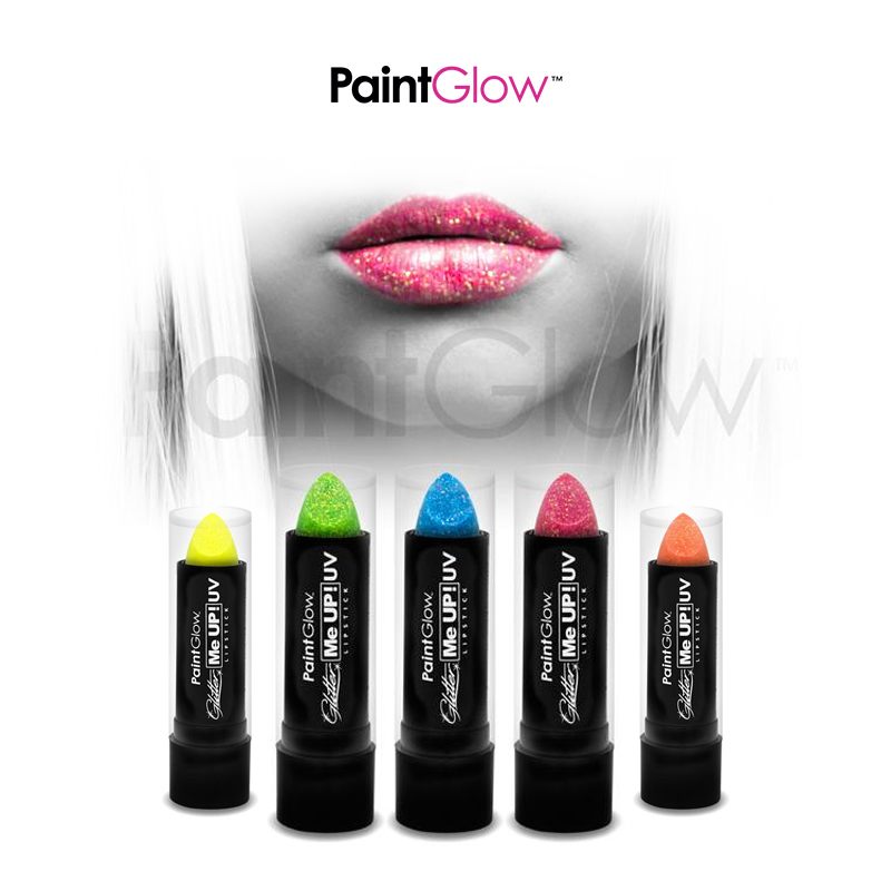 Now get super shimmer and glow with our UV reactive Glitter Lipstick, same smooth creamy consistency that you love about our UV Lipstick but now with the added of thousands of UV reactive glitter flakes.