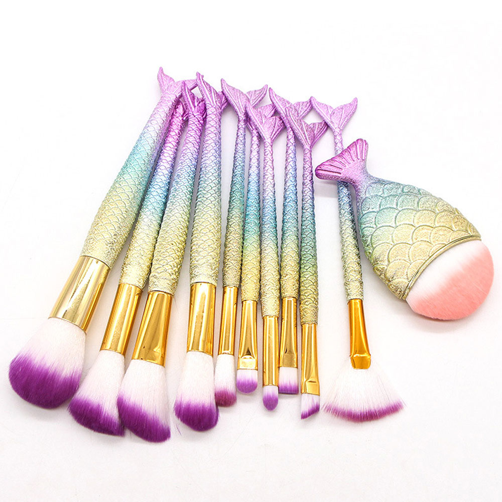 11 χρωματιστά πινέλα μακιγιάζ με λαβές που μοιάζουν με χρυσόψαρα. Η τρίχα τους είναι πλούσια και απαλή, ιδανική για κάθε τύπο επιδερμίδας. Είναι κατάλληλα για ανάμειξη προϊόντων σε σκόνη, υγρή ή κρεμώδη υφή.