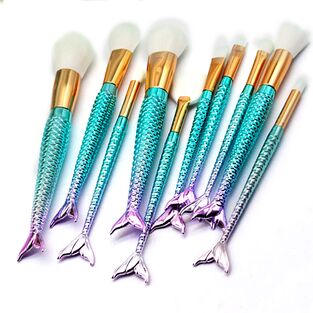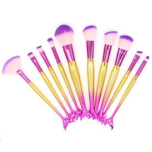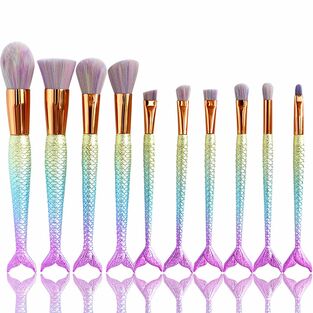 10 Πολύχρωμα Πινέλα Μακιγιάζ Σχήμα Γοργόνας