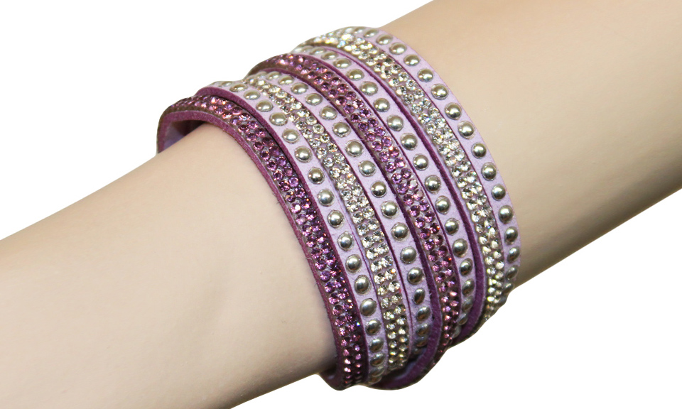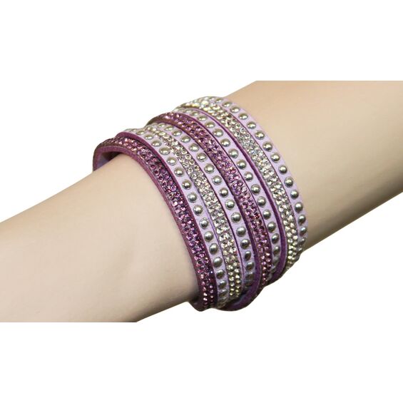 Βραχιόλι από οικολογικό δέρμα που διπλώνει γύρω από τον καρπό, με πολύτιμους λίθους, διακοσμητικά μεταλλικά στοιχεία και ρυθμιζόμενο κούμπωμα. Χαρακτηριστικά: Διαστάσεις: 40εκ Υλικό: Οικολογικό δέρμα, Πολύτιμοι λίθοι Χρώμα: Φούξια, Γαλάζιο, Ανοιχτό Πράσινο, Ανοιχτό Μοβ,...